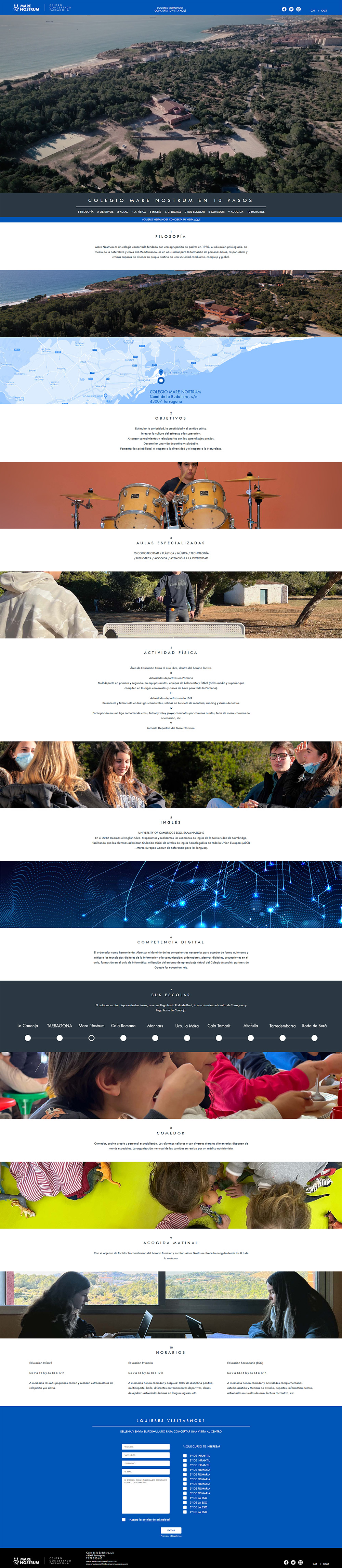 Com a part de la campanya, vam desenvolupar un microsite específic de captació, paral·lel al web corporatiu del centre. La narrativa s’inicia amb un audiovisual i continua presentant, en deu passos, els aspectes més rellevants del col·legi. Com a element clau, es va dissenyar un formulari final orientat a facilitar la concertació de visites i maximitzar la conversió.