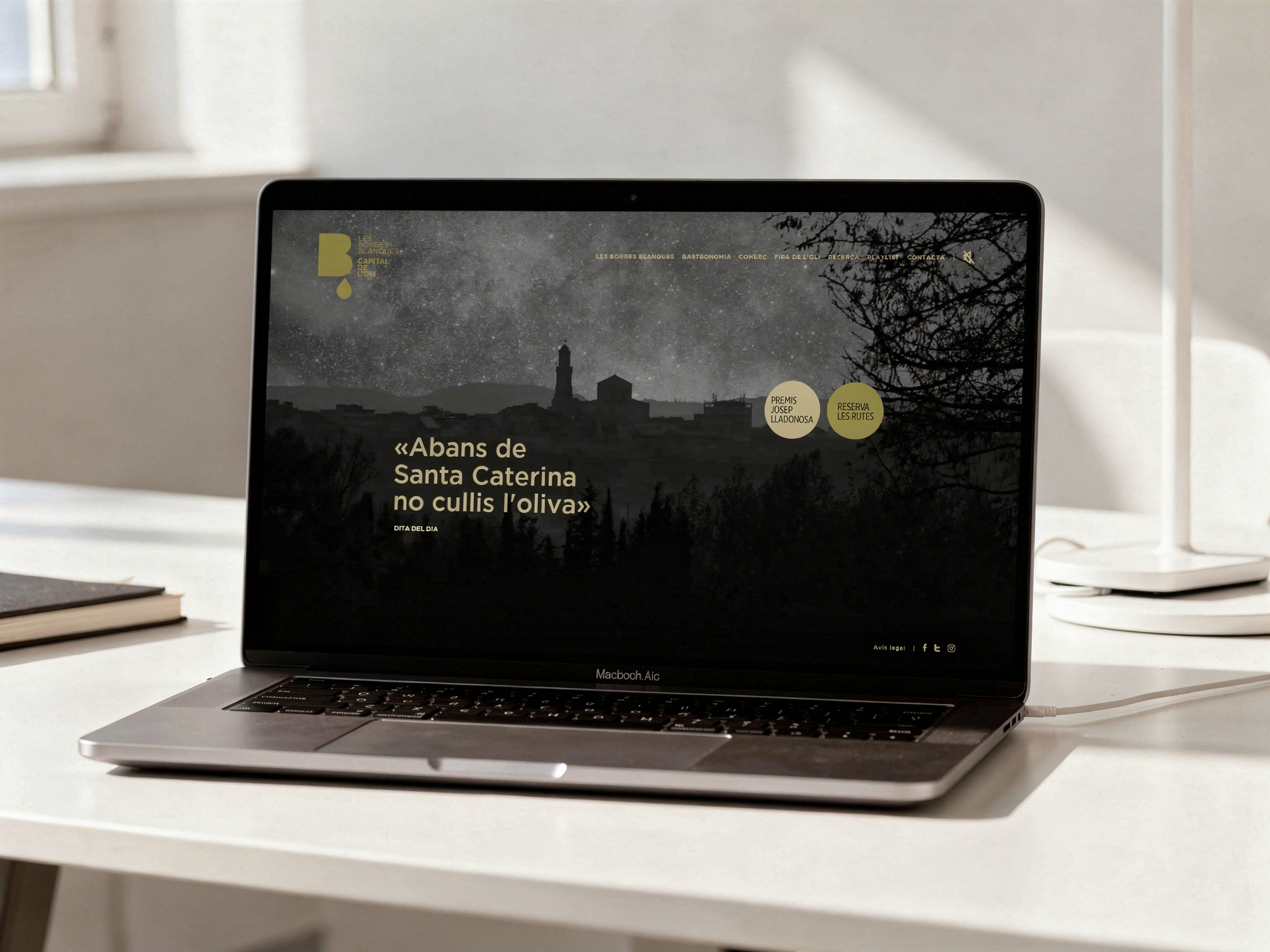 El projecte parteix d’un posicionament clar: Les Borges Blanques com a territori referent per la qualitat i la tradició oleícola, amb una projecció contemporània. Això es tradueix en una identitat visual sintètica i recognoscible, on la B del topònim es fusiona amb la forma d’una gota d’oli, simbolitzant el vincle profund entre territori i producció.