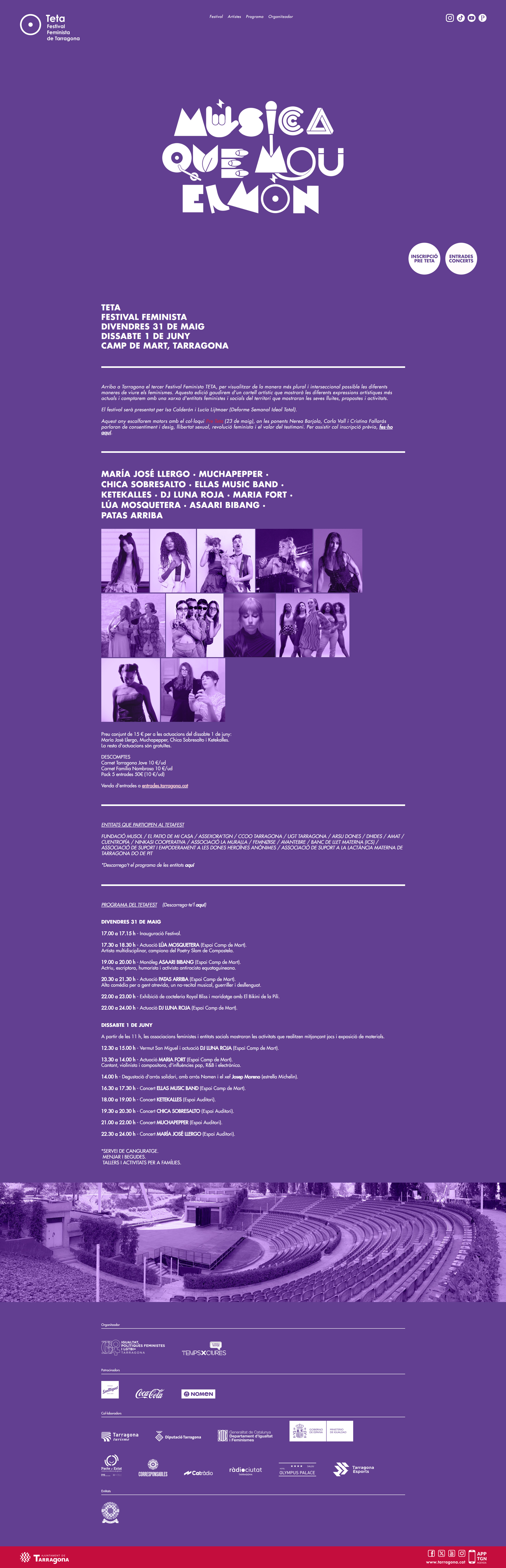 L’Ajuntament de Tarragona ens va encarregar la conceptualització i desenvolupament d’un festival feminista, un projecte cultural que neix amb la voluntat de visibilitzar el talent femení i generar un espai de música, cultura i reivindicació al centre de la ciutat. El festival s’ha consolidat com un punt de trobada que dona protagonisme a artistes i col·lectius feministes, contribuint a equilibrar la presència de les dones en l’escena musical.